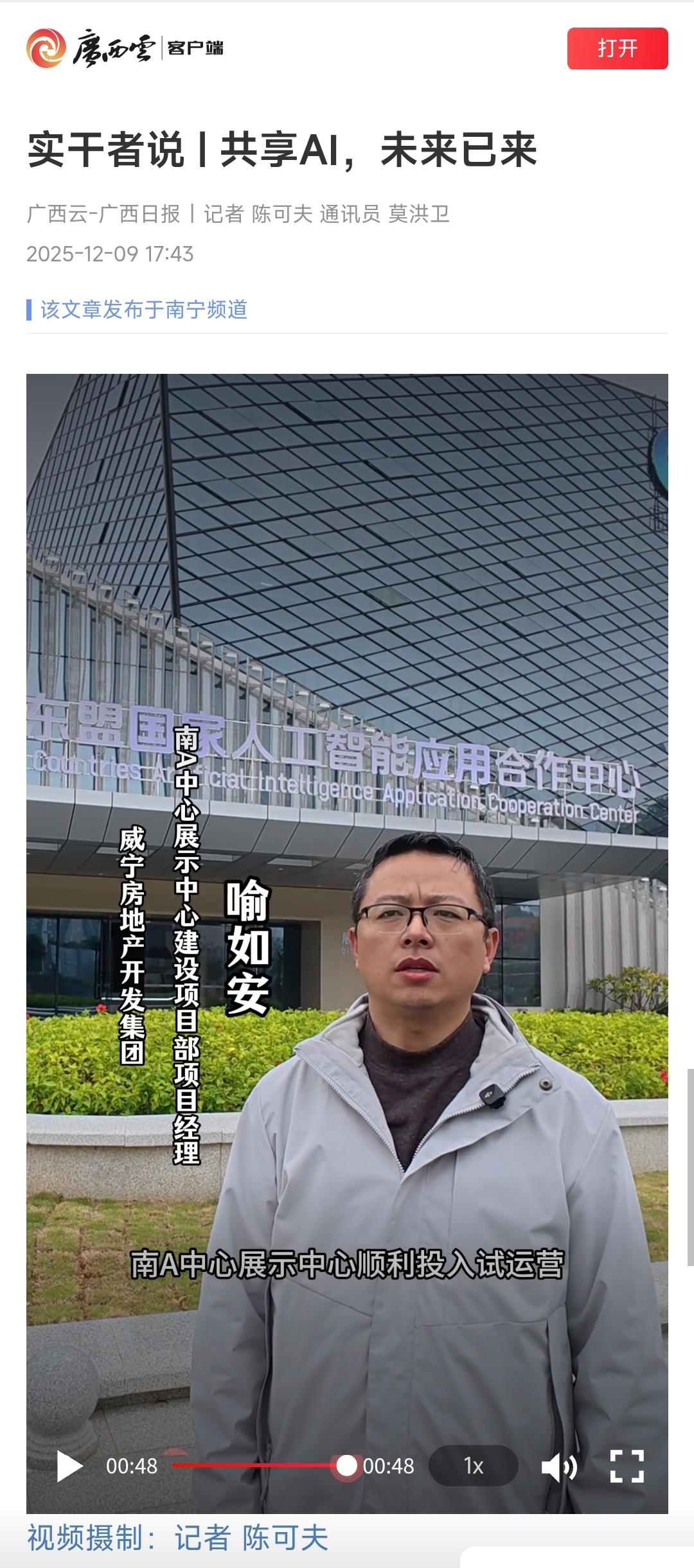 媒体关注|广西日报报道南A中心展示中心“实干者说”
