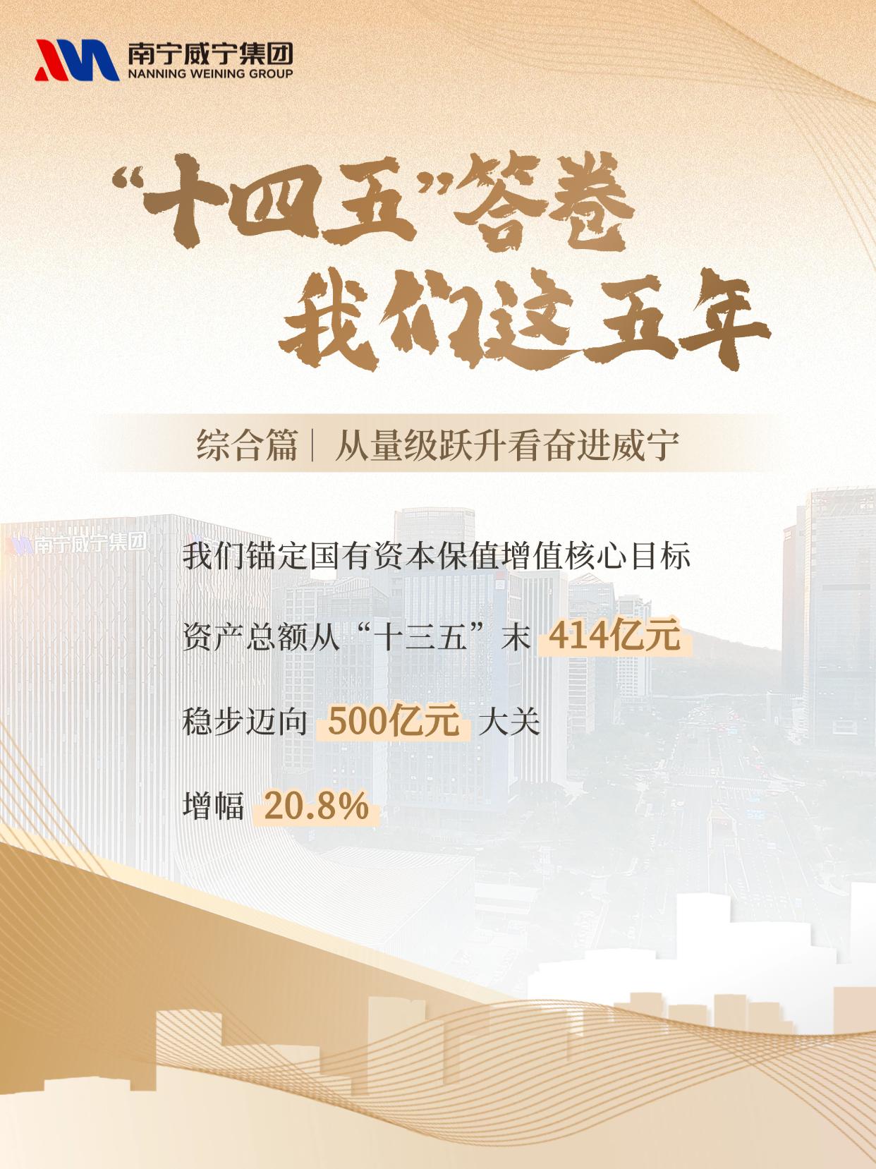 近日,集团微信公众号推出 “‘十四五’答卷 我们这五年” 系列海报,以五个篇章全景呈现威宁“十四五”期间的砥砺历程与发展成就。首期聚焦 “综合篇:从量级跃升看奋进威宁” ,通过一组组扎实的数据、一项项亮眼的成果,见证我们如何实现从规模扩张向提质增效的跨越。资产突破500亿元、营收迈上百亿台阶、融资规模翻番、投资拉动持续发力……这不仅是数字的增长,更是综合实力与服务城市能力同步增强的生动写照。