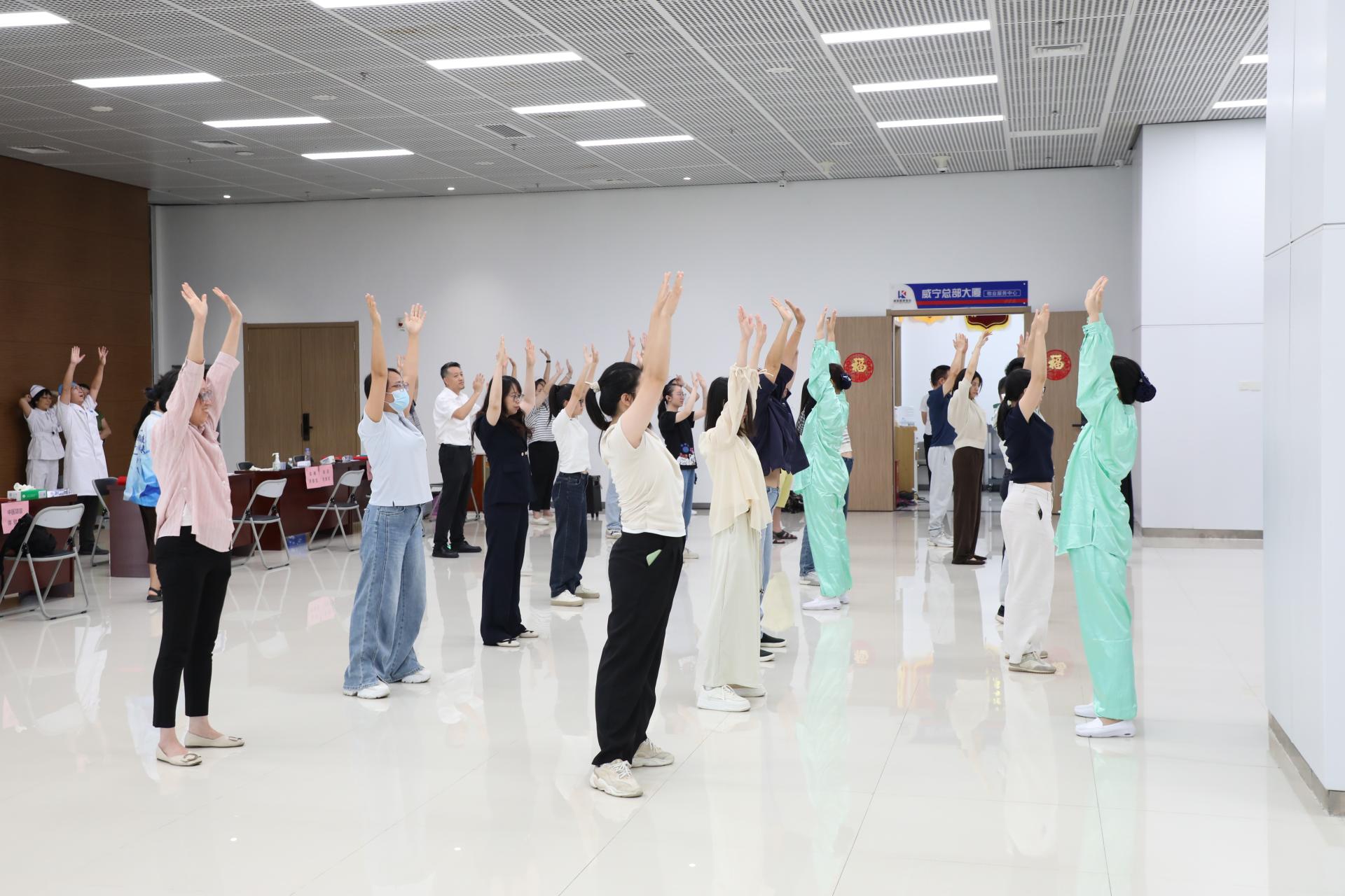 南宁市第一人民医院针灸科主治医师马景桐带来的中医养生专题讲座,以深入浅出的方式传授贴近生活的养生智慧;随后,在医院专家指导下,职工们集体学习了八段锦,在舒缓的动作中调理身心;活动最后设立体验区,耳穴压豆、刮痧、健康咨询及体检报告解读等义诊服务受到大家的踊跃参与,获得好评。