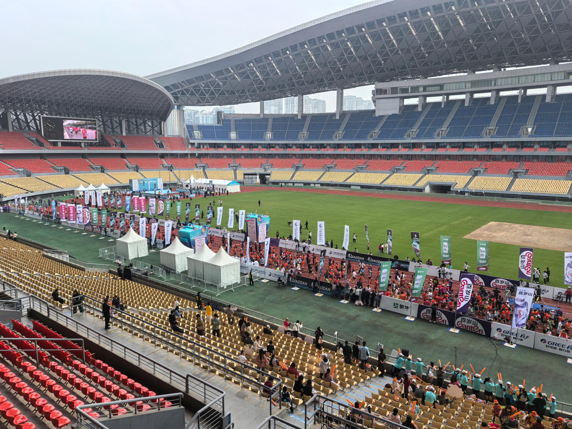 在赛事转换的“时间战场”上,党员始终是冲锋在前的排头兵。12月6—7日的“极限挑战”中,12月6日网球邀请赛颁奖仪式一结束,场地氛围布置随即清场,当晚,北广场南宁马拉松商务区完成全展位定位,确保12月7日上午3.6万名马拉松选手完赛后顺利使用。南宁马拉松赛事结束后,广西体育中心工作人员立即启动“快速转换预案”,连轴作业完成清场、设备复位、清洁消毒及新一轮布置,保障12月7日下午和晚上两场CBA俱乐部杯南宁赛区收官战如期开场。这样的48小时“变身”场景,在12月频繁上演。每一次高效转换的背后,都是党员先锋模范作用的生动诠释。