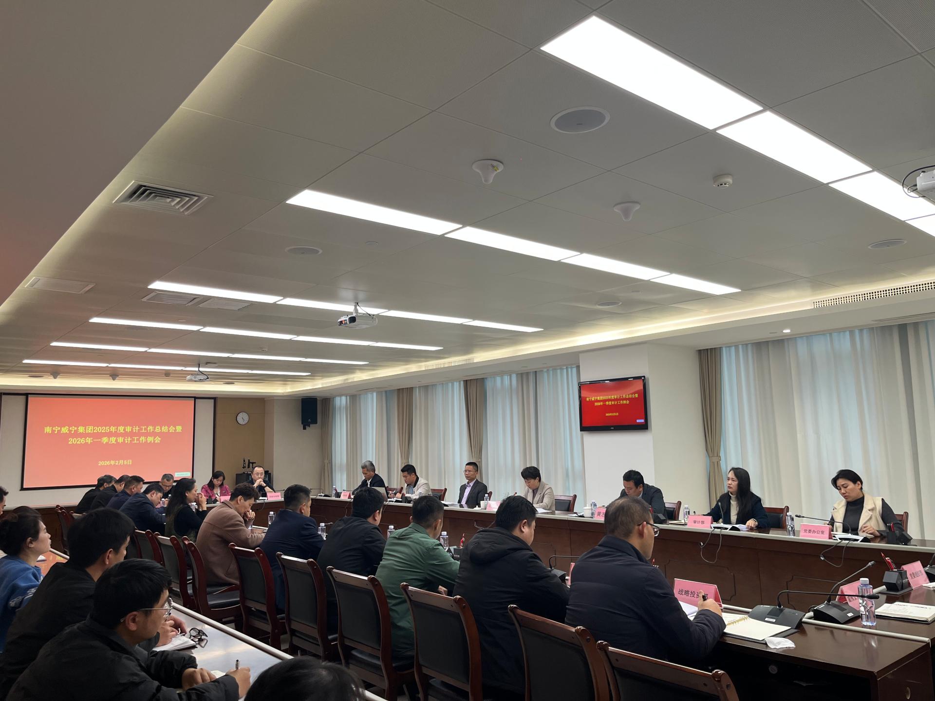 2026年2月5日,南宁威宁集团召开2025年度审计工作总结会暨2026年一季度审计工作例会,深入贯彻落实上级关于内部审计工作的部署要求,全面总结2025年审计成效,系统谋划2026年重点任务。会议由集团副总经理黄志炜主持,集团党委书记、董事长刘巧瑛出席会议并讲话。会议指出,2025年集团审计工作成效显著,统筹能力持续提升,风险导向审计进一步夯实,全年发现问题整改完成率较2024年大幅提升,审计报告质量和整改精细化水平明...