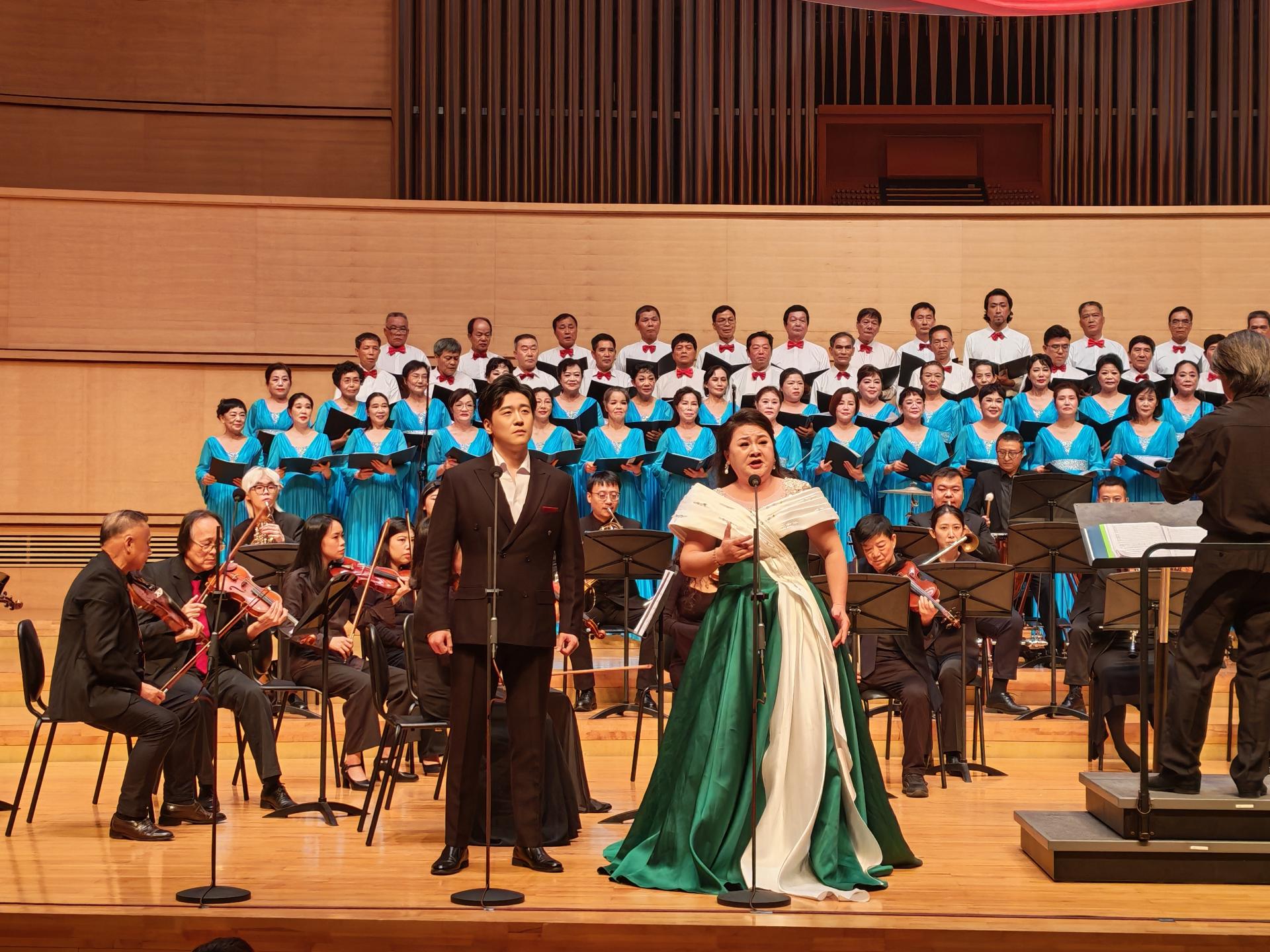 音乐会的尾声,伴随着《歌唱祖国》的豪迈旋律,台下观众与全体艺术家齐声高唱——“五星红旗迎风飘扬,胜利歌声多么响亮……”激昂的歌声响彻整个音乐厅,将现场氛围推向最高潮。这一刻,音乐成为连接情感的纽带,凝聚起全场观众团结奋进、共筑美好未来的磅礴力量。