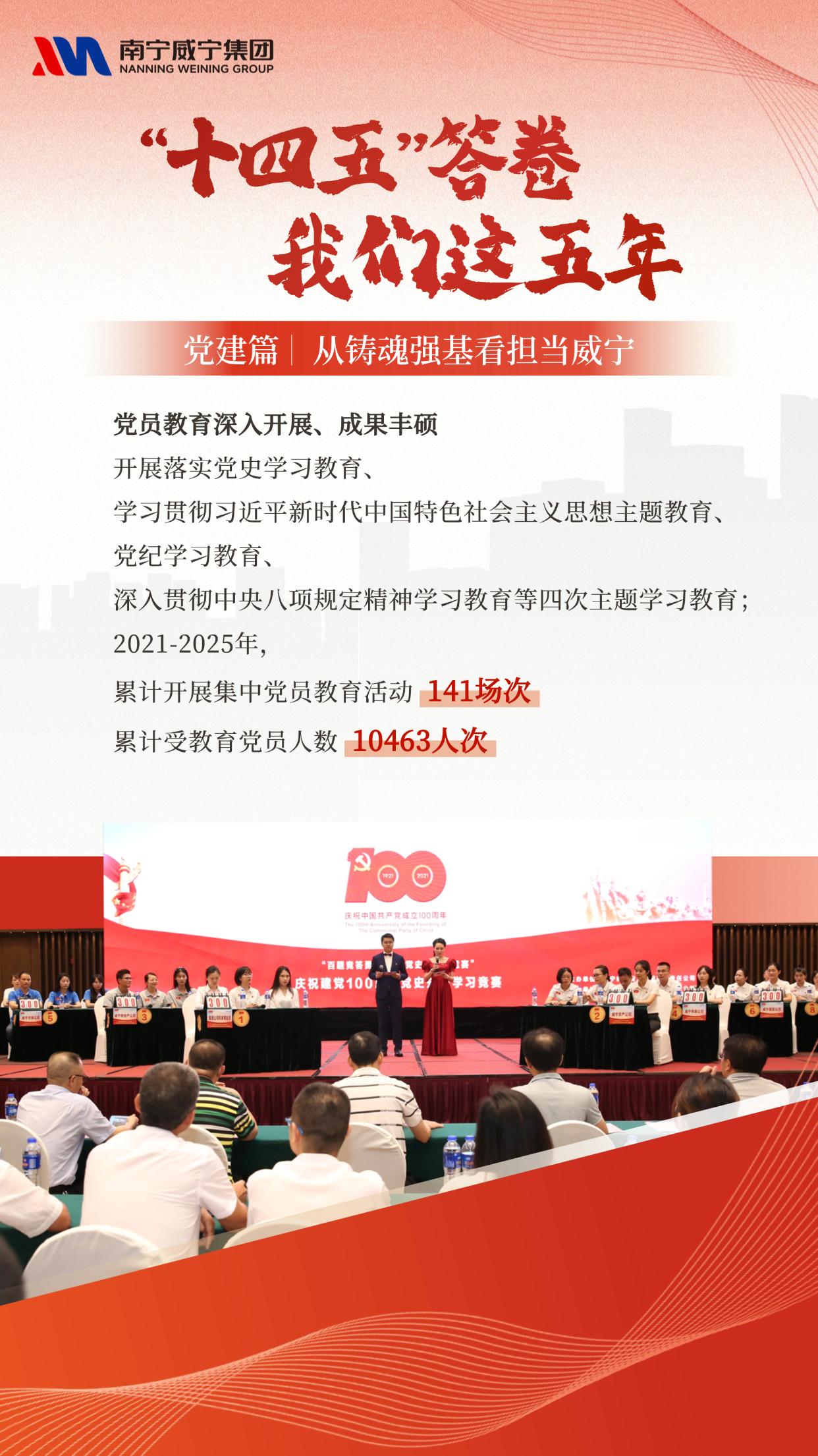 近日,集团微信公众号推出 “‘十四五’答卷 我们这五年” 系列海报,以五个篇章全景呈现威宁“十四五”期间的砥砺历程与发展成就。事业兴衰,关键在党;强企之路,根基在魂。本期我们聚焦“党建篇:从铸魂强基看担当威宁” ,一起回望党建引领下凝聚的磅礴力量。五年来,我们坚持把党的领导融入公司治理各环节,以严密制度体系筑牢决策根基,以前置把关定向保障行稳致远。从“威光”党建品牌矩阵的持续构建,到一批批党员先锋岗、突击队冲锋在前;从扎实深入的系列主题学习教育,到风清气正政治生态的全面重塑——党的建设,始终是推动发展的红色引擎,是攻坚克难的最硬脊梁。