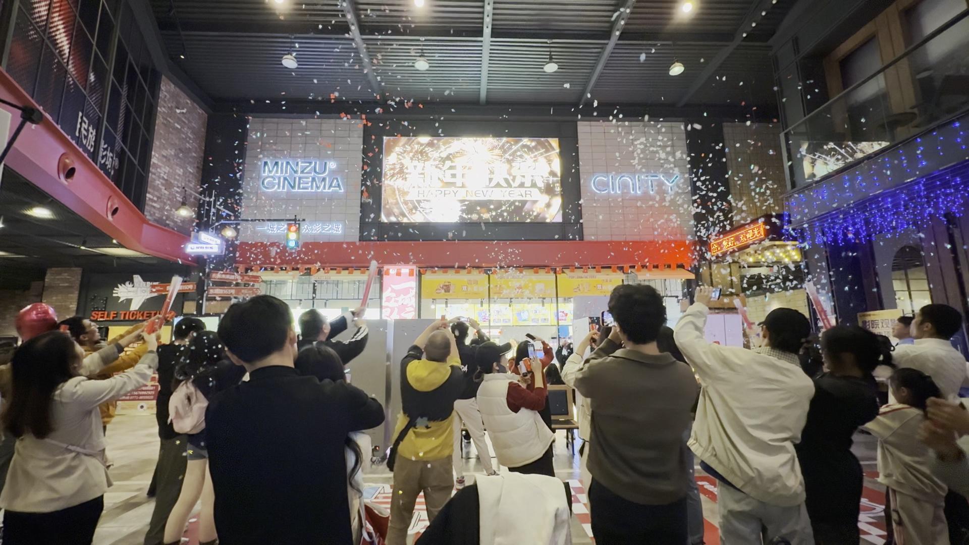 系列特色活动精彩纷呈。元旦档期间,系列特色活动为观影增添多重乐趣。元旦前夕,东葛绿地店举办狂欢跨年夜活动,近200名影迷齐聚大堂,通过放礼炮等充满仪式感的方式共同倒数,迎接新一年的到来。此外,影城精准对接年轻群体需求,积极参展绿城动漫展,现场通过拉新送优惠券的形式吸引潜在观众,既推动品牌曝光超5万人次,也为元旦档观影热潮注入新鲜活力,实现了影片推广与用户增长的双重突破。