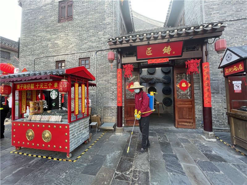 三街两巷工作人员在进行全面消杀工作