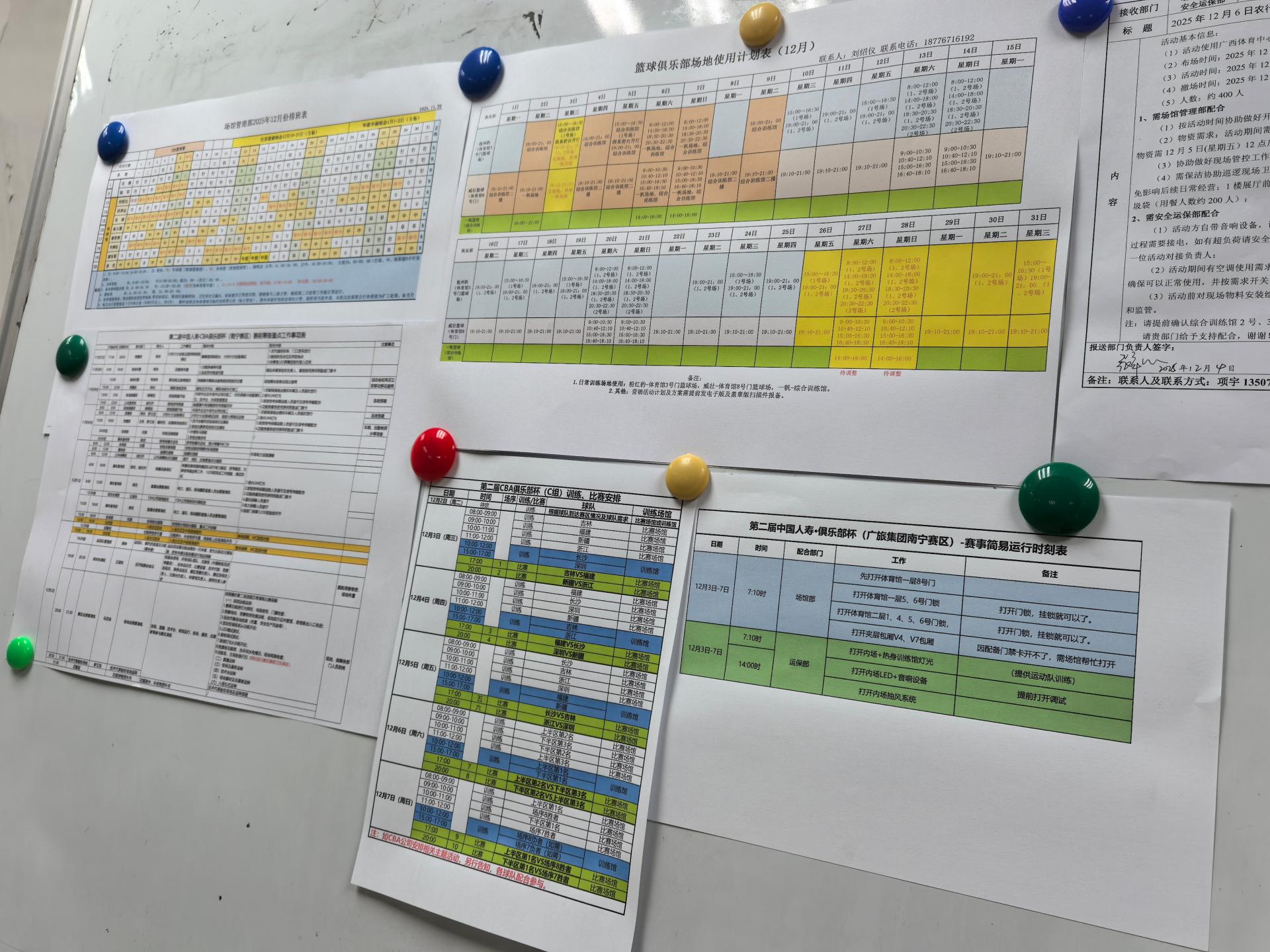 在赛事转换的“时间战场”上,党员始终是冲锋在前的排头兵。12月6—7日的“极限挑战”中,12月6日网球邀请赛颁奖仪式一结束,场地氛围布置随即清场,当晚,北广场南宁马拉松商务区完成全展位定位,确保12月7日上午3.6万名马拉松选手完赛后顺利使用。南宁马拉松赛事结束后,广西体育中心工作人员立即启动“快速转换预案”,连轴作业完成清场、设备复位、清洁消毒及新一轮布置,保障12月7日下午和晚上两场CBA俱乐部杯南宁赛区收官战如期开场。这样的48小时“变身”场景,在12月频繁上演。每一次高效转换的背后,都是党员先锋模范作用的生动诠释。
