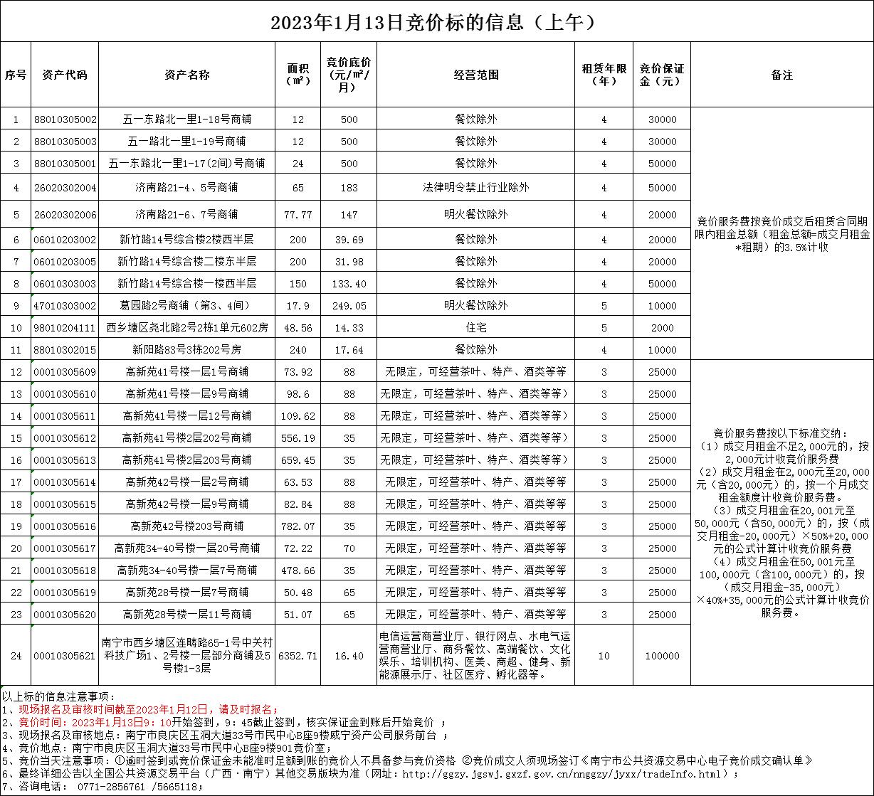 2023年1月13日竞价标的信息