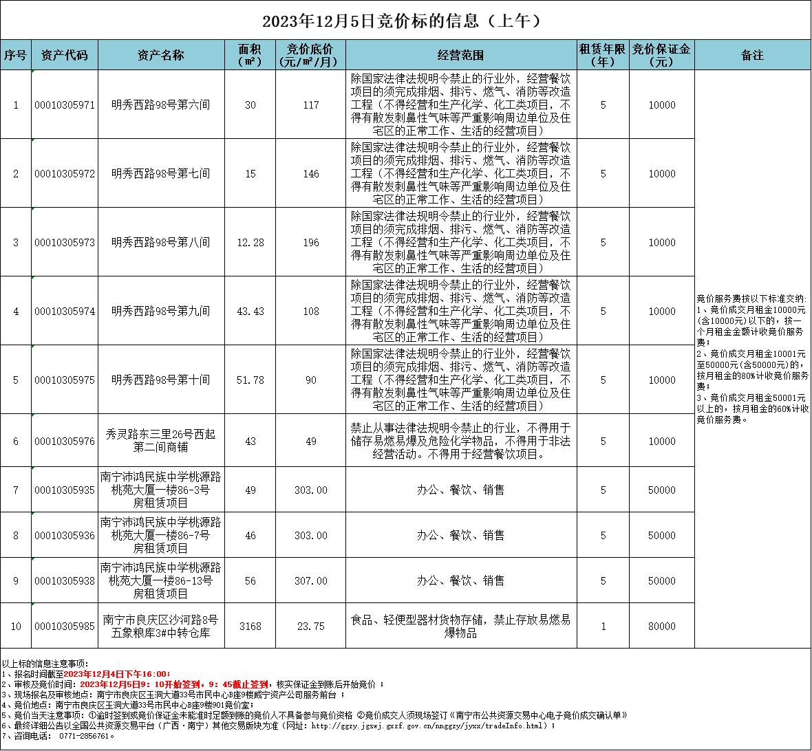 2023年12月5日竞价标的信息