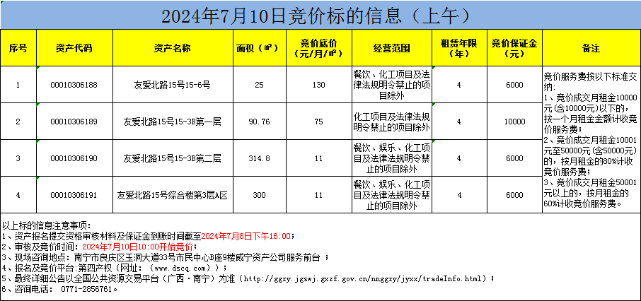 2024年7月10日竞价标的信息(线上竞价)