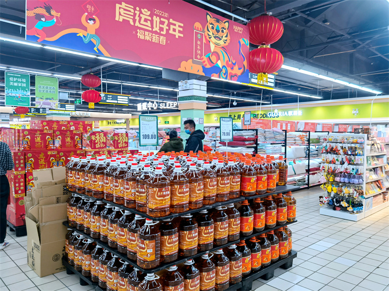 大型商超中的“桂井”粮油产品农贸市场年货商品丰富农贸市场肉菜商品保供价稳春节临近,年味儿渐浓,农副产品消费市场一片红火。威宁市场公司积极发挥国有农产品销售主渠道作用,全力做好春节期间市民生活必需品保供工作,守好市民的“菜篮子”“米袋子”。在新阳路水街市场,新年的喜庆感扑面而来,处处呈现供销两旺的喜人景象,腊肉、羊蹄、大阉鸡……各摊位前人头攒动,比往日更加热闹。运送果菜的车辆进出不断,生猛海鲜和鱼虾
